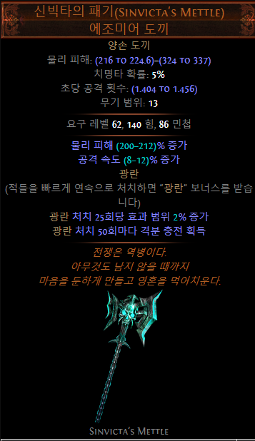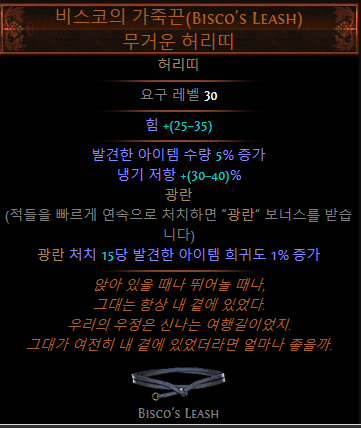 저번 POE :: MF( 매찬 ) 세팅 가이드에서 비스코의 가죽끈이 광란 덕분에 맵핑에 도움이 된다고 했었다.