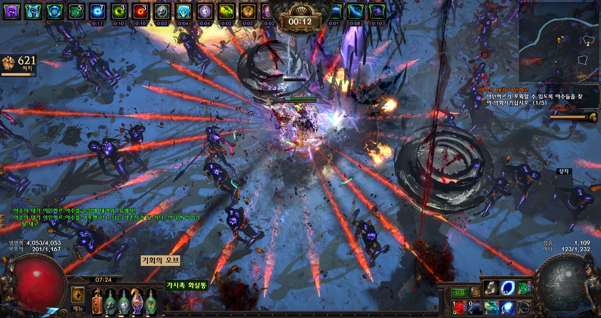 - 175 처치 1초 이하의 간격으로 대미지를 주는 5번의 폭발 발생