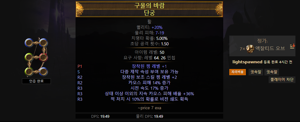 마지막에 공격 속도 증가 보조를 사용해서 점멸 화살을 빠르게 하거나 향상 보조를 사용하여 절망의 퀄리티를 올림으로써 더 많은 대미지를 줄 수 있습니다.