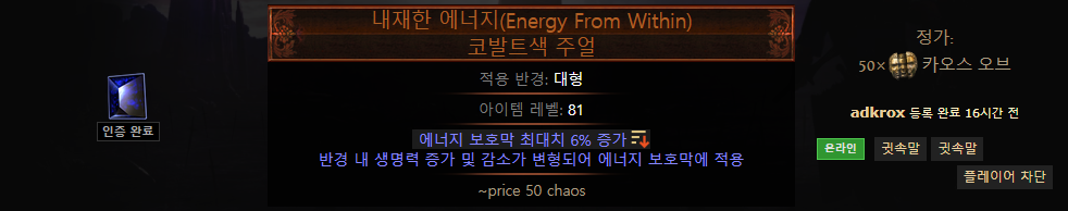 반지에서 에너지 보호막과 대미지를 같이 챙기려면 가성비가 좀 안맞기때문에 다른 장비에서 힘을 포기하고 에너지 보호막 챙기세요.
