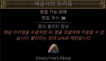 그리고 세공사의 프리즘 1개와 20레벨 스킬 젬 1개를 아무 NPC한테 판매 합니다.