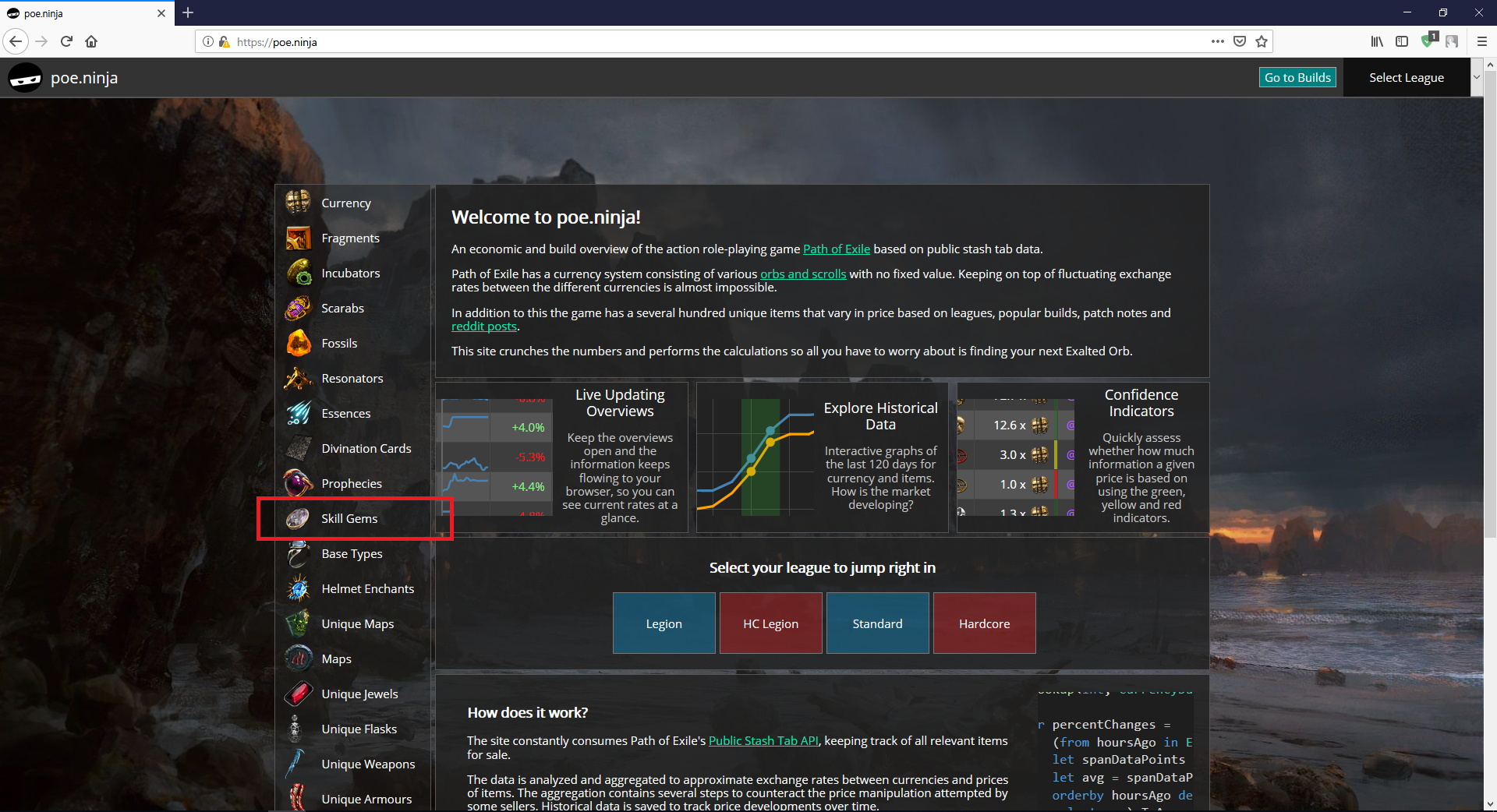 닌자 사이트에 들어가서 좌측에 보면 스킬 젬 카테고리가 있습니다.