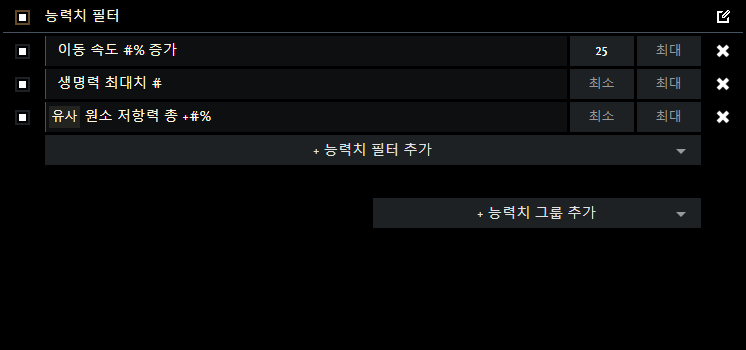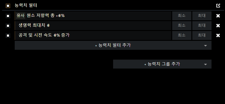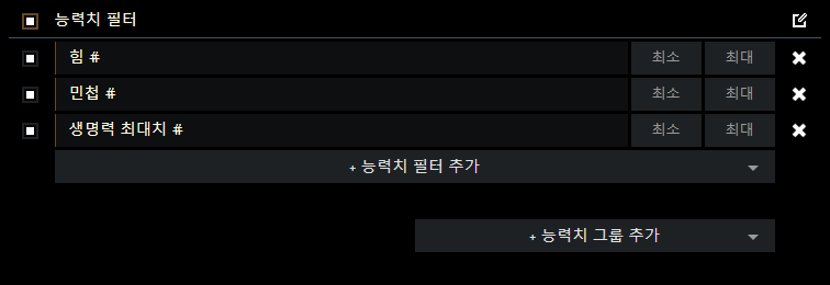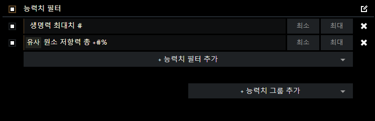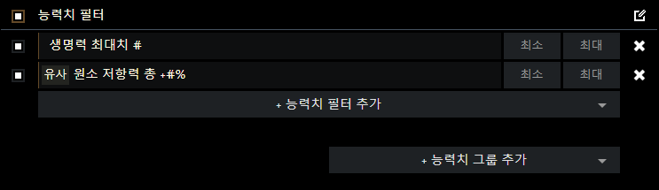 생명력 최대치 옵션을 기본으로 하여 나머지 옵션을 하나하나 추가해 맞추시면 됩니다.