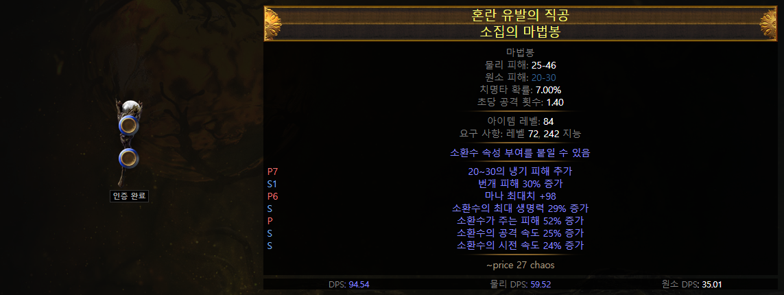 원소 균형을 사용하기 때문에 주문 시전 시 화염 피해 추가 옵션을 제외 하였습니다.