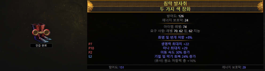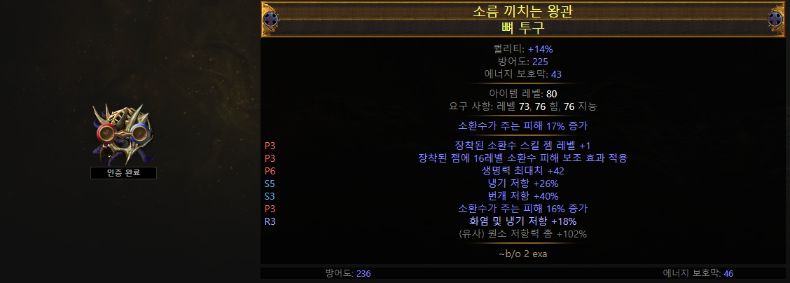 챙겨야할 옵션이 따로 없으므로 자유롭게 부족한 능력치와 저항, 생명력을 챙기시면됩니다.