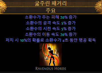 좀비 소환 - 연속 타격 보조 - 격분 주입 보조 - 소환수 속도 보조