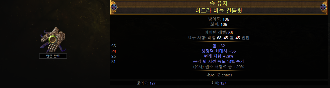 다른 갑옷을 사용한다고 하더라도, 바알 용암 방패는 힘을 154, 투사체 약화는 민첩을 154까지 요구하기때문에 부족한 능력치를 챙겨야합니다.