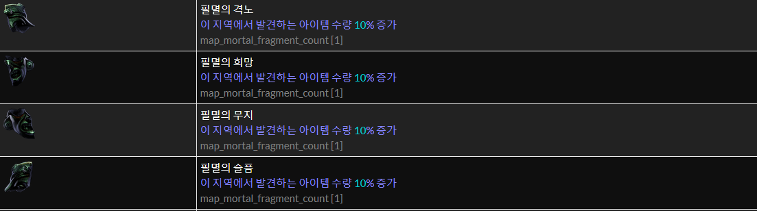 쓰레기 옵션이라고 불리는 발견하는 아이템 희귀도 증가 옵션을 이용한 고가 고유 아이템인 헤드헌터 파밍 하는 방법이 있다.