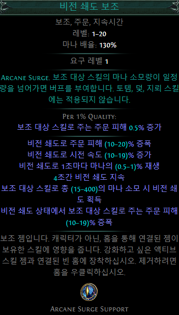 직접 비전 쇄도 보조 젬을 연결해서 사용하면 20 레벨 기준으로 최대 주문 피해가 20% 증폭이 되는데