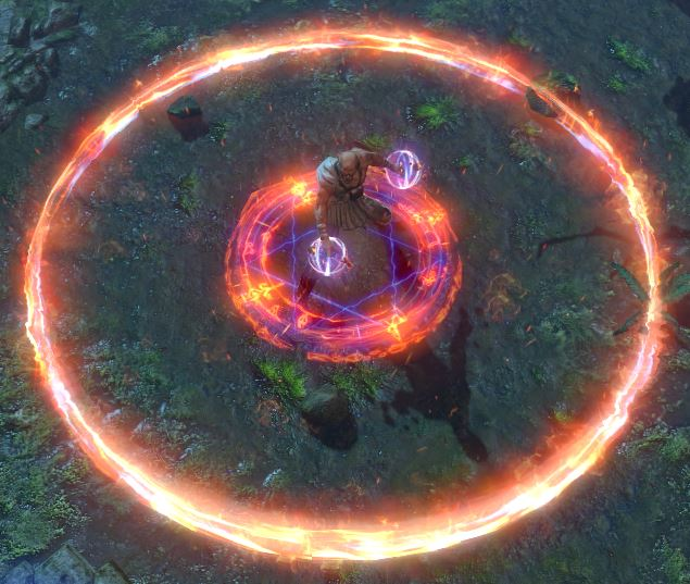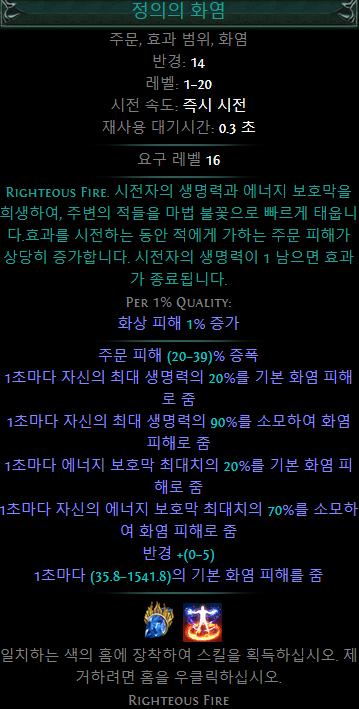 정의의 화염은 주변의 적들에게 지속 화염 피해를 준다.