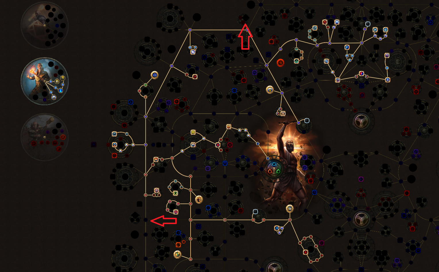 화살표로 보이는 바와 같이 좌측과 상단으로 스킬 군 주얼 확장 가능하며