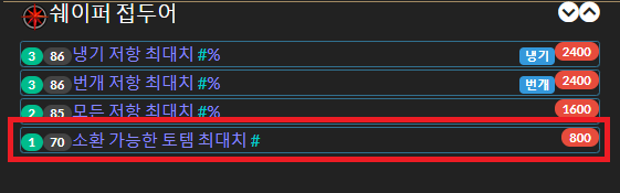 쉐이퍼 방패에서 얻을 수 있는 토템 최대치 + 1
