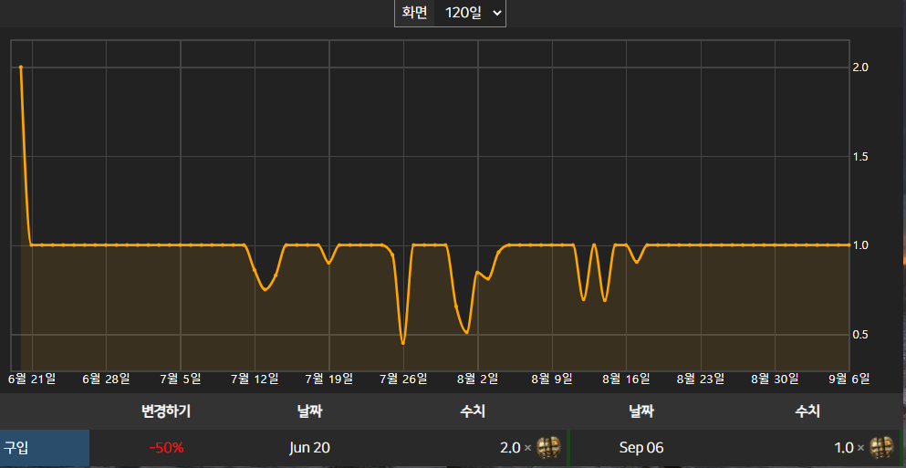 리그 시작하고 일주일 이내로 구입한다 가정하면