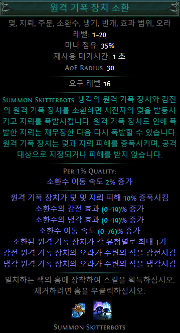 레벨이 오를수록 감전 효과가 증가하여 20 레벨 기준으로 받는 피해 17.85% 까지 증가한다.