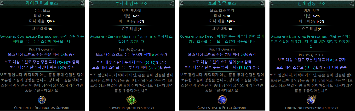 효과 집중 보조의 범위 피해 증폭, 번개 관통 보조의 번개 저항 관통