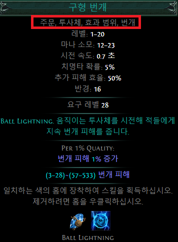 구형 번개는 투사체 피해 스킬이라서 그렇다.