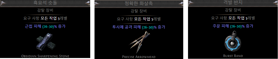 착용 제한은 근접, 원거리, 마법으로 나눠진다.