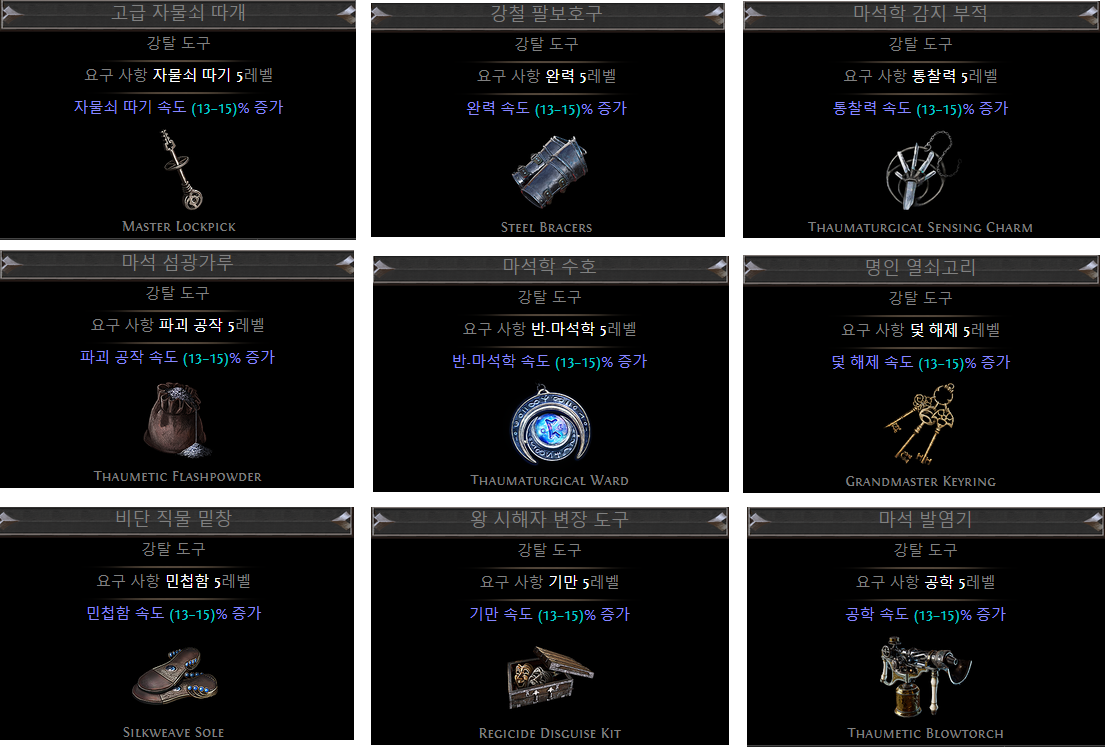 아마 작업 속도와 자물쇠 따기 속도가 태그가 겹쳐서 같이 안 달릴 거 같은데 아직 정보가 부족해서 모른다.