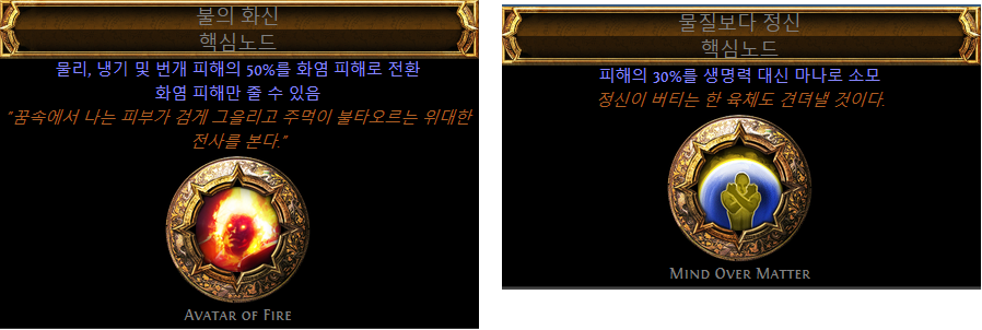 살펴본 결과 불의 화신과 물질보다 정신 노드를 고정으로 채택