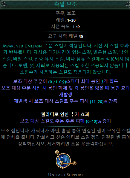 촉발 보조는 첫 시전 대미지는 멀쩡하지만 이후 반복해서 나오는 시전들에 대해 페널티로 피해 감폭을 주는데