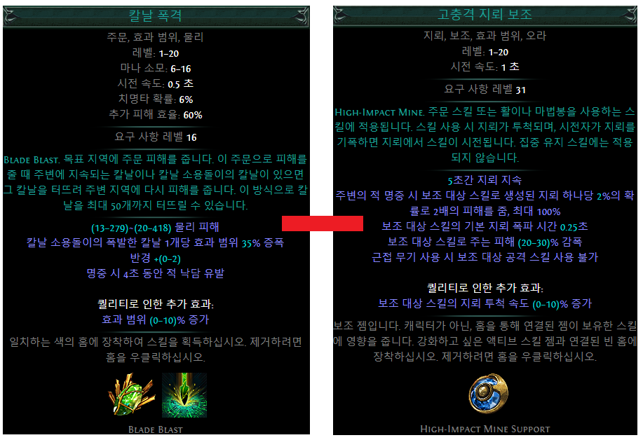 촉발 보조처럼 반복 시전을 했을 시 첫 시전에서 나오는 칼날이 이후 모든 칼날의 대미지를 정한다는 것이다.
