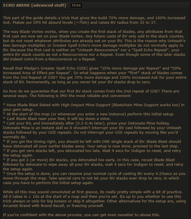 촉발 보조와 상위 주문 메아리 첫 번째 반복의 칼날까지 다 날려버리고 손으로 맺은 서약의 상위 주문 메아리 보조 마지막 두 번째 반복이 첫 칼날이 된다.