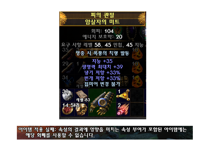 접미어 변경 불가 다시 달고, 화석 크래프팅 해보면 경고가 뜨며 사용이 불가능함.