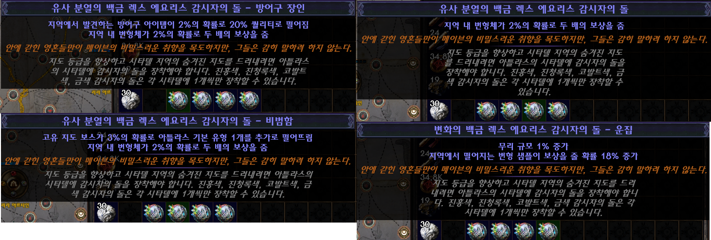 감시자의돌 세팅 2배 3개, 샘플 1티어 1개.