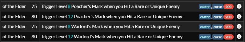 " Trigger Level 8 Warlord's Mark when you Hit a Rare or Unique Enemy "
