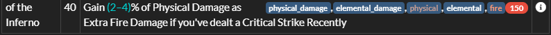 " Gain (2–4)% of Physical Damage as Extra Fire Damage if you've dealt a Critical Strike Recently "