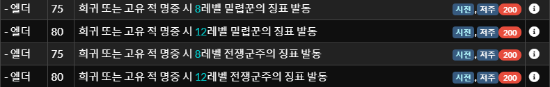" 희귀 또는 고유 적 명중 시 8레벨 전쟁군주의 징표 발동 "