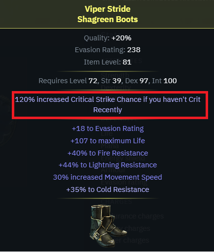 " 120% increased Critical Strike Chance if you haven't Crit Recently "