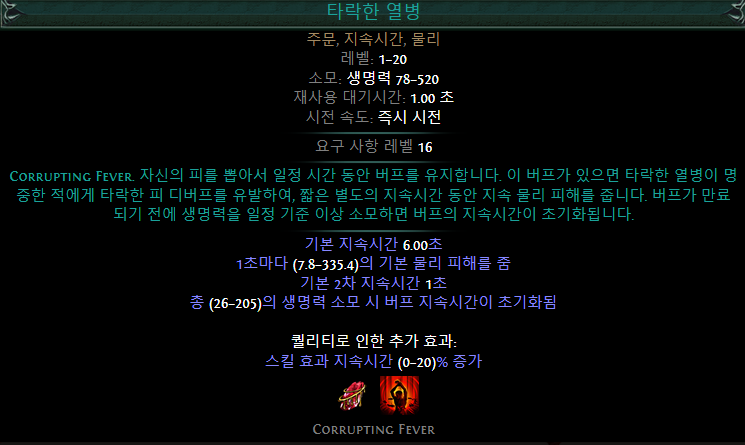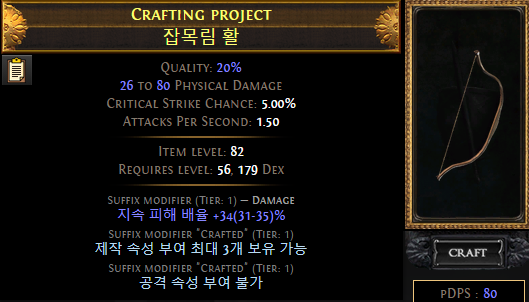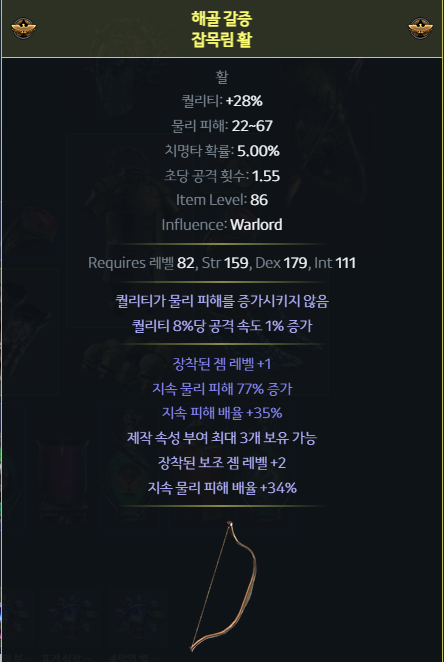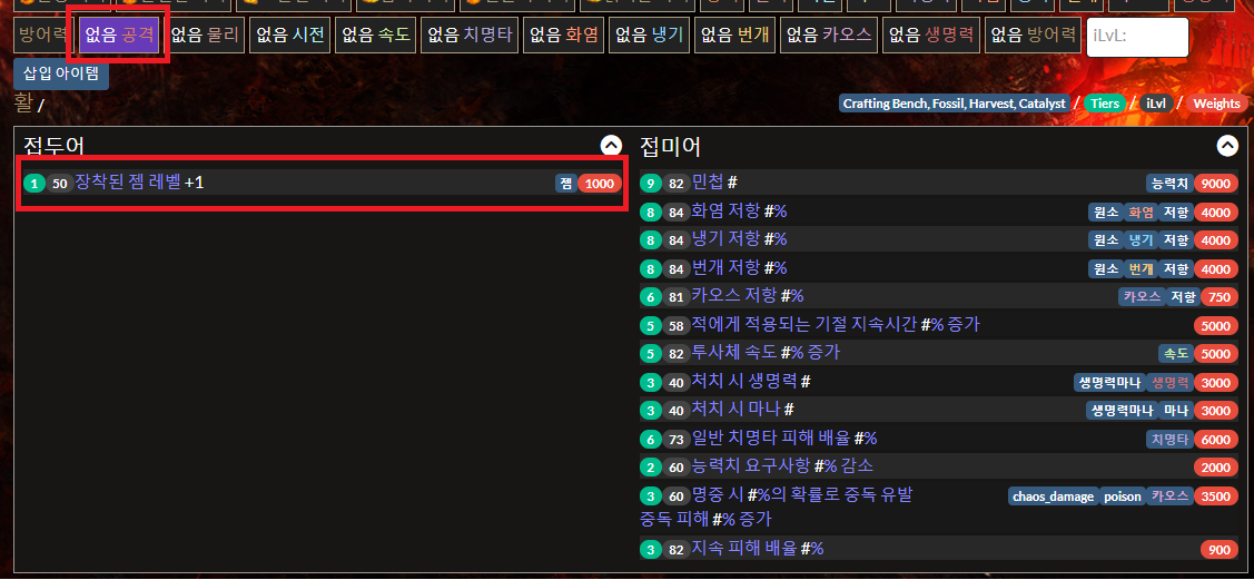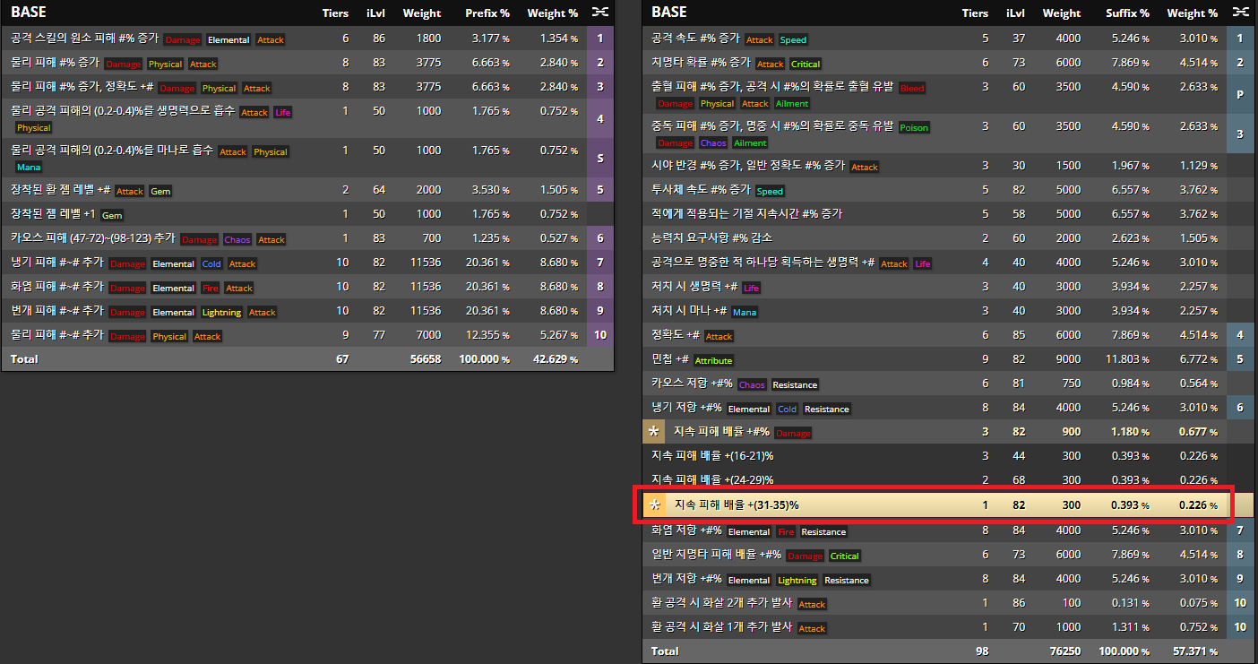 아이템 레벨은 필요한 레벨이 제일 높은 옵션이 지속 피해 배율 1 티어이므로 최소 82 레벨 이상.