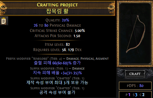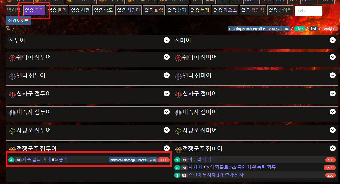 4. 전쟁군주 옵션 '지속 물리 피해 증가' 확정 크래프팅