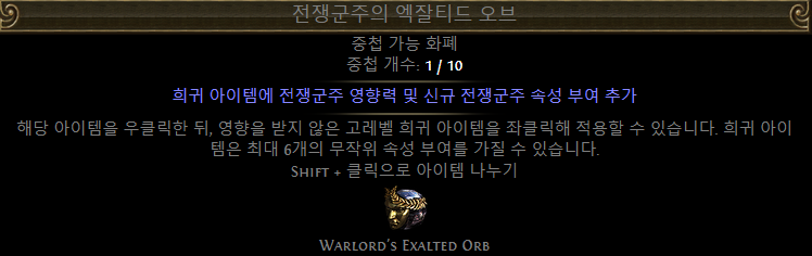 3. 지속 피해 배율 옵션만 가진 레어로 만들기 - 제왕의 오브 1개, 소멸의 오브 1개