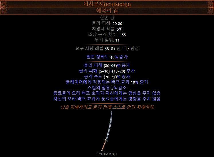 이치몬지는 내 취향임. 벨팀버 투사체 추가 옵션이 조건부라서 싫음.