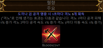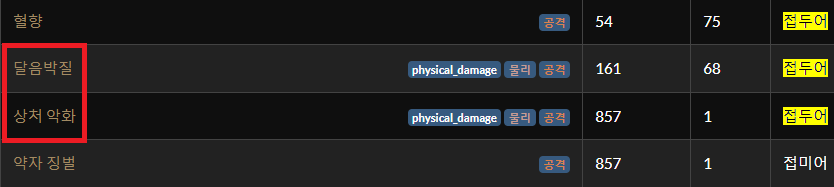 포인트 아끼기 위해서 혈향과 약자 징벌 딱 2개만 찍을 거라서 달음박질과 상처 악화 두 접두어를 버리는 패시브로 채용.