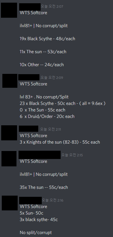 현재 시세 기준 검은 낫 45 ~ 50 카오스, 태양의 기사단 50 ~ 55 카오스