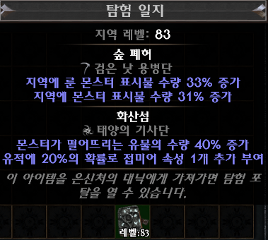 남아도는 유물로 갱신 화폐 사면서 리롤 하다 보면 가끔 이렇게 탐험 일지도 판다.