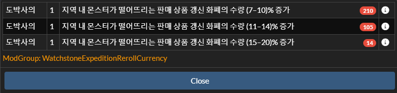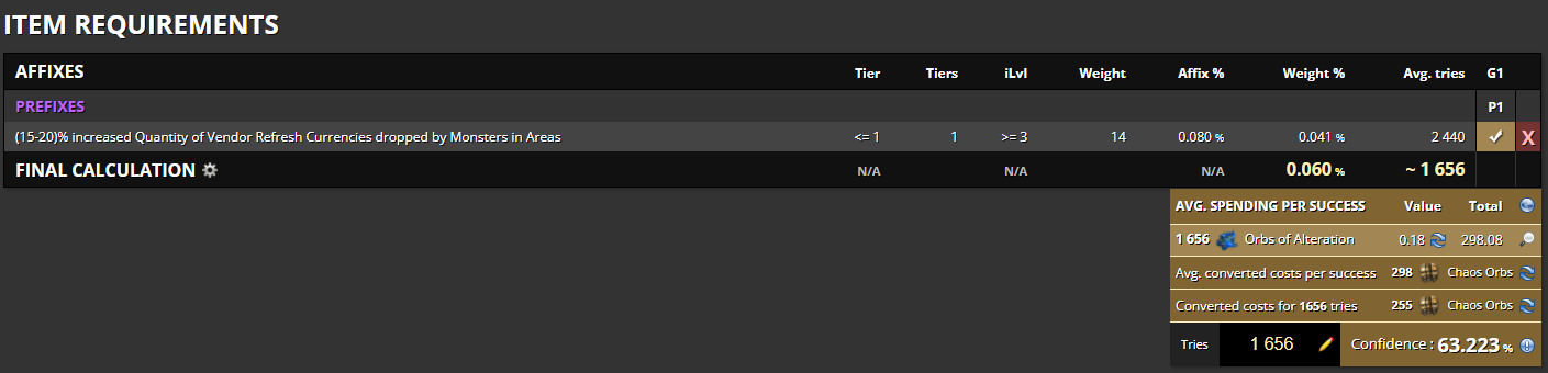 대략 1600개의 알터 필요. 현재 알터 1개 = 0.18 카오스 정도 하니까 300 카오스 정도 소모됨.
