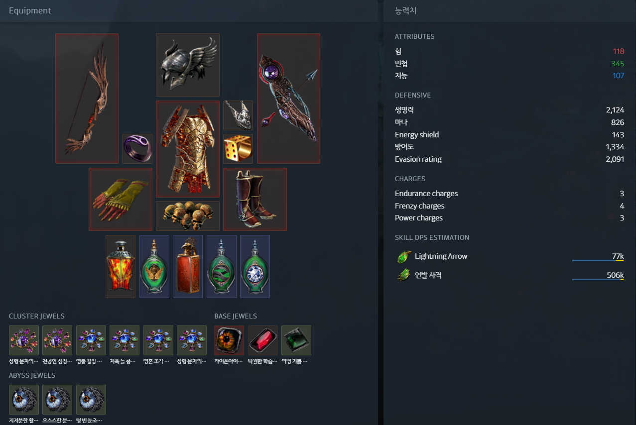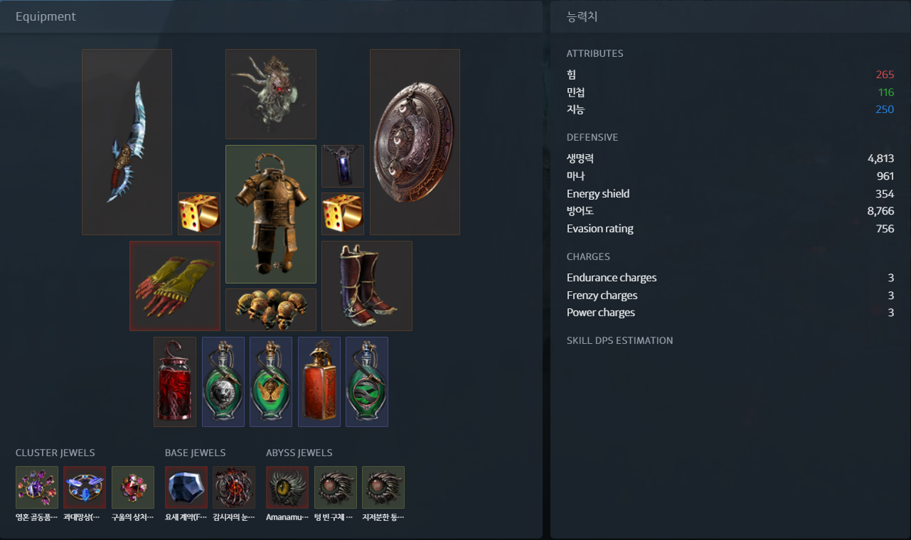 위 세팅 올린 이유는 군 주얼 사용 안 하고, 인스파 2개로 적당히 때웠기 때문에 편하게 맞출 수 있어서.