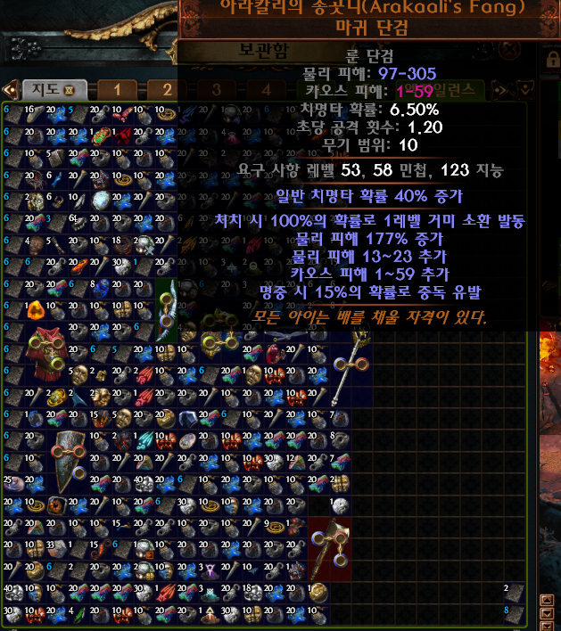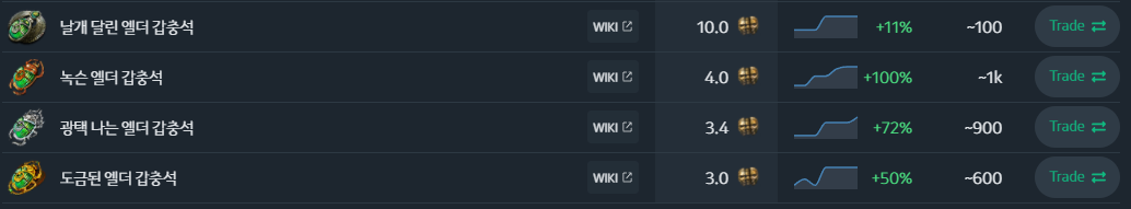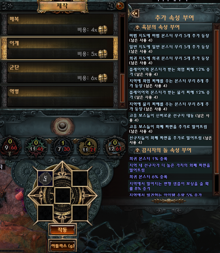 매복, 엘더, 성유물, 점술 갑충석 사용.
