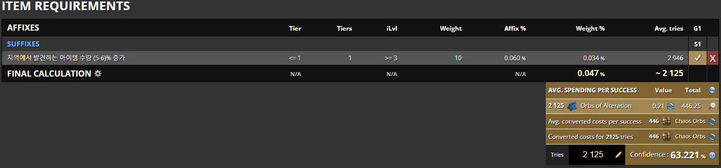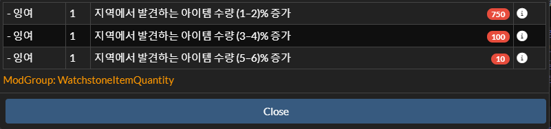 지역에서 발견하는 아이템 수량 증가 옵션은 접미어이기 때문에
