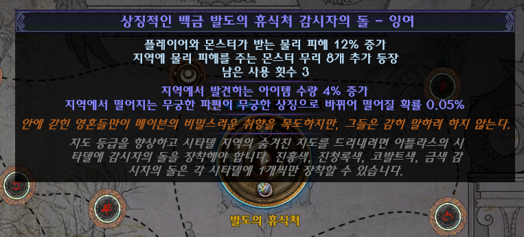 보스 안 잡는 파밍이기 때문에 돌의 비밀과 인내의 영향력 두 개면 끝.