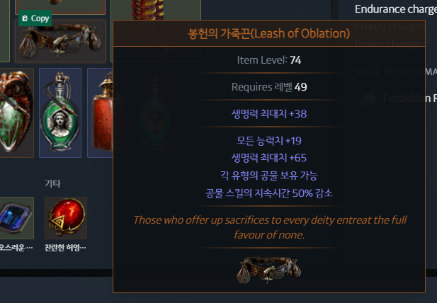 금지된 의식 투사체 추가 발사 인챈트 뚜껑에 받은 피해 생명력 회복 스컬지 옵션.