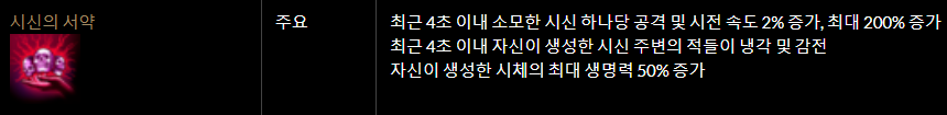 각성 젬으로 변경할 시 시신의 서약 시전 속도 증가 200% 최대치까지 뽑기 가능.