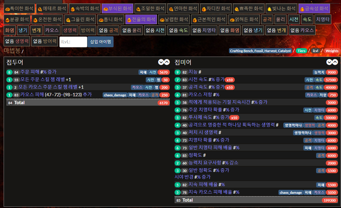 갑옷 제작과 마찬가지로 뽑기 힘든 옵션이 접두에 몰려있으니 접미는 적당히 알아서 마무리 하면됨.