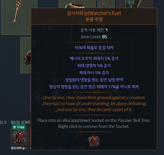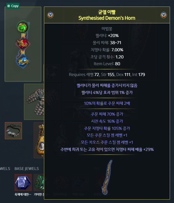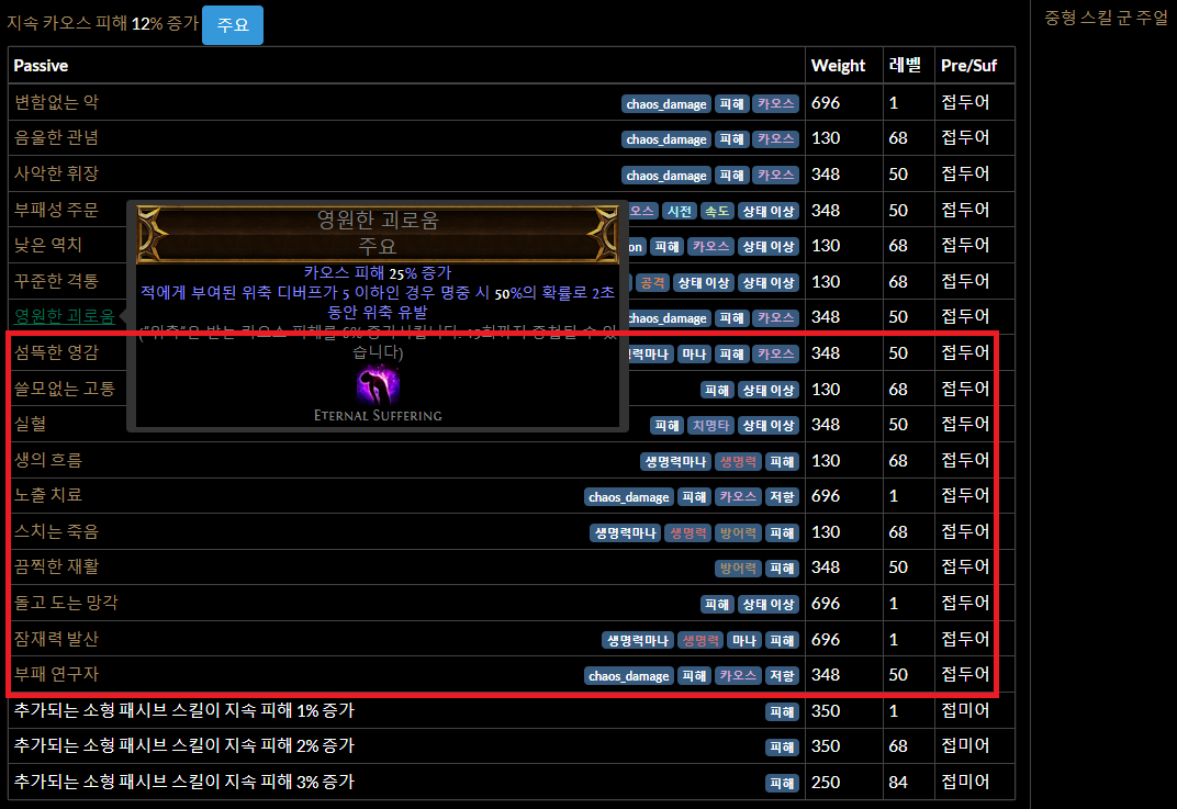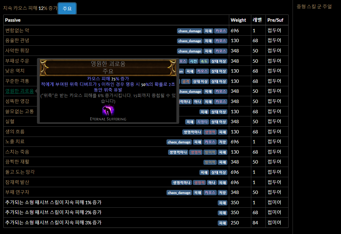 dps 증가를 위해 지속 카오스 피해 중형 군 주얼에서 영원한 괴로움 붙은 거 구매.