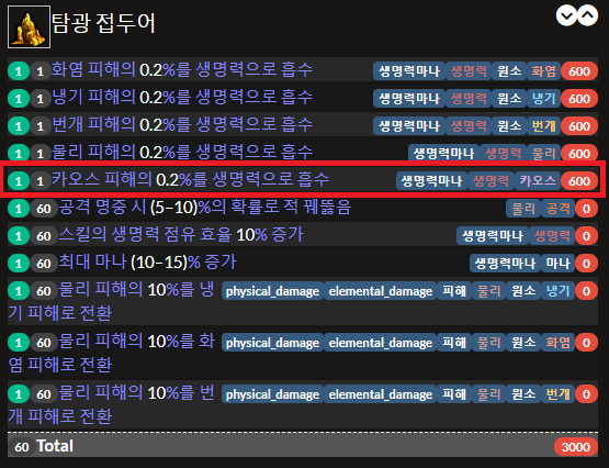 피 석화 켜줬으니 흡수 유지를 위해 카오스 피해 흡수 탐광 접두어 붙은 반지 적당한 거 구매.