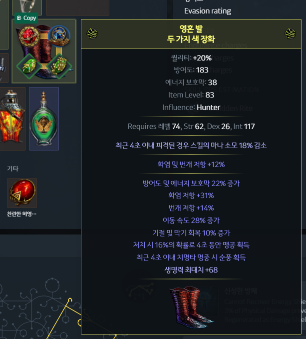 공물 효과 증가 ( 사냥꾼 접미어 ) 붙은 갑옷 구매.